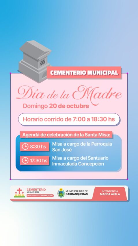 La municipalidad de Barranqueras informa cuáles serán los horarios de atención, durante el Día de la Madre, en el Cementerio Municipal