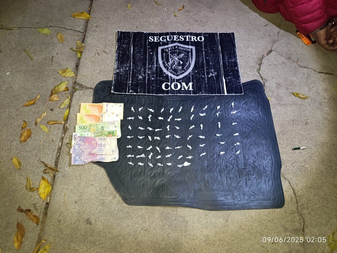 Durante la requisa, los agentes secuestraron 66 envoltorios que contenían cocaína, con un peso total de 8 gramos, además de la suma de $3.200 en efectivo. La prueba de campo realizada por el personal especializado confirmó que se trataba de estupefacientes.