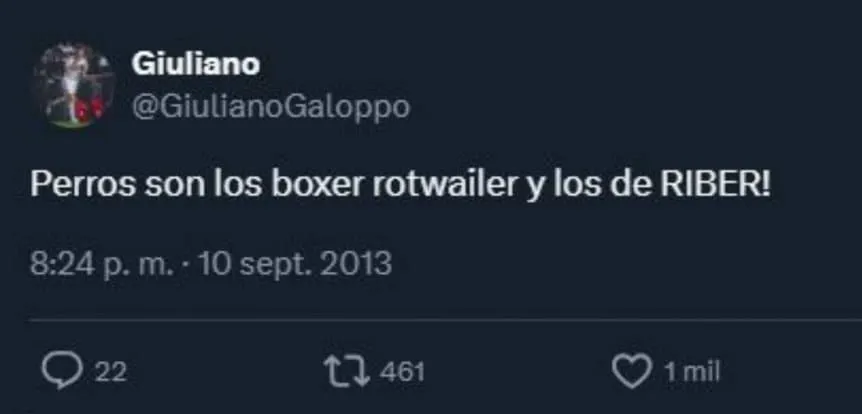 A raíz de su pase a la Banda, comenzaron a viralizarse varios tweets antiguos del ex-Banfield en los que se burlaba de su clásico al escribir «Riber», en referencia a la estadía en la B Nacional que tuvo entre 2011 y 2012. Todavía no había probado suerte en las Inferiores del Xeneize. En aquel momento, defendía los colores de Atlético Rafaela, donde había llegado procedente de un club de Freyre, Córdoba. Cabe aclarar que, si bien es argentino, vivió entre los tres y los 10 años en Italia porque su padre jugaba en San Remo.