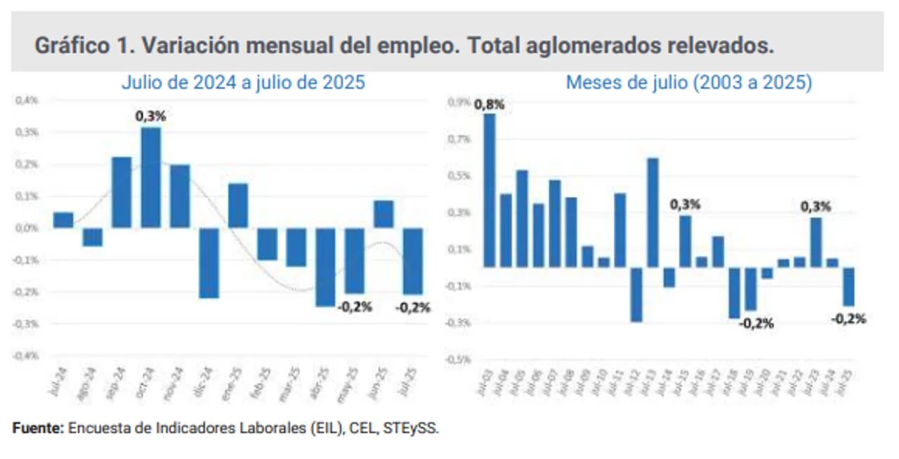 De este modo, la EIL argumentó que “la expansión de las bajas de personal en un contexto en el que se mantienen las contrataciones explica la caída del nivel de empleo neto observado durante julio”.