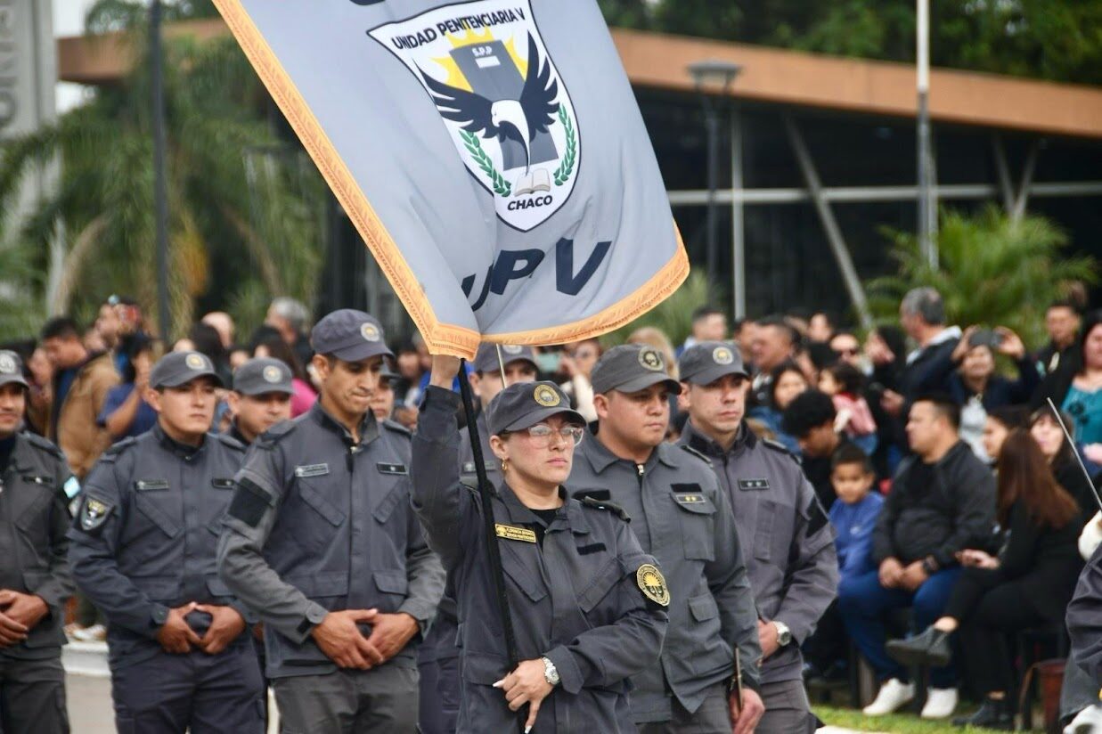 *El gobernador de la provincia Leandro Zdero, acompañó, este martes, en el Parque de la Democracia, el acto oficial por el XVII aniversario del Servicio Penitenciario y de Readaptación Social del Chaco. Junto al ministro de Seguridad Hugo Matkovich y la jefa del Servicio Penitenciario, Gilda Erika Maidana, el mandatario saludó a los agentes de esa fuerza y reivindicó su trabajo cotidiano para garantizar la seguridad de la ciudadanía.*