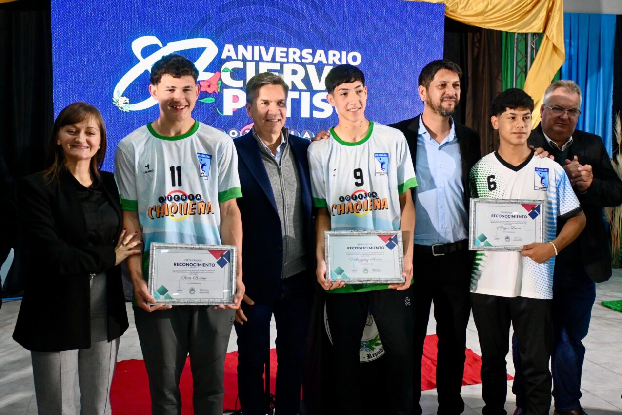 El gobernador Leandro Zdero encabezó, este lunes junto a la vicegobernadora Silvana Schneider, y al intendente Darío Acosta, el 87º aniversario de Ciervo Petiso. En la oportunidad, firmó un convenio entre el municipio y el presidente de Lotería Chaqueña, Lucas Apud Masin para la refacción del Playón Deportivo Municipal San Ramón. “Son 87 años de vida, de historia, de logros y de dificultades, pero fundamentalmente de esfuerzo de una comunidad que se atrevió en momentos difíciles de seguir y salir adelante”, sostuvo el primer mandatario provincial y destacó la importancia de ratificar el sentido de pertenencia de las personas en su lugar donde viven.