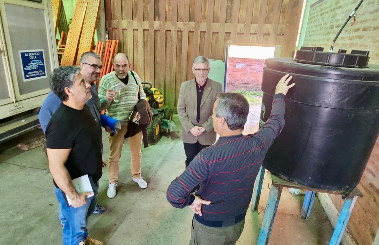 El Presidente de la APA, *Jorge Pilar*, recibió a *Eduardo Oliva* asesor de la Subsecretaría de Agricultura de Nación y representante de la Fundación Agua Viva y los asesores técnicos de la Subsecretaría de Municipios del Chaco, *Juan Valussi y Hugo Varas*. Todos fueron invitados a recorrer las instalaciones de la APA donde se hacen pruebas de los tanques de abatimiento de arsénico, coordinado por Juan Carlos Motironi, del Área de Dirección de Regulación y Suministro de los Servicios.