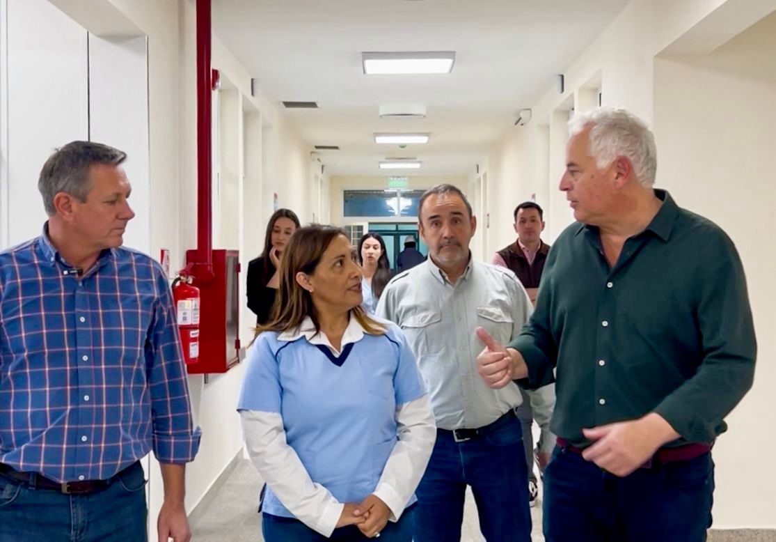 El ministro de Infraestructura, Hugo Domínguez, junto al intendente Rubén Rach, supervisó el avance de los trabajos que se desarrollan bajo un esquema planificado por etapas, para garantizar el normal funcionamiento del hospital y la atención a pacientes durante la obra.