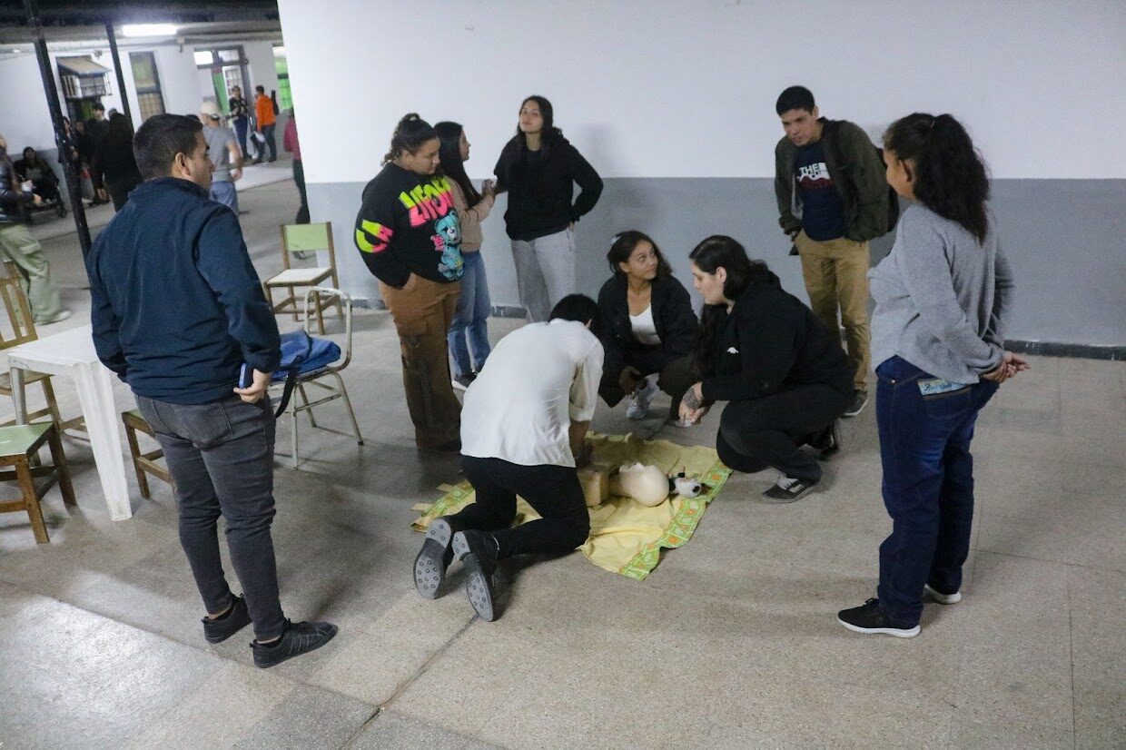 Desde el Instituto Barranqueras se vienen desarrollando, desde hace más de un año, talleres de formación en RCP abiertos a la comunidad. Estos espacios están a cargo de Melina Aguilar, estudiante de la Tecnicatura en Gestión Ambiental y bombera voluntaria, quien transmite con compromiso y responsabilidad la urgencia de formar a la ciudadanía en estas técnicas esenciales.