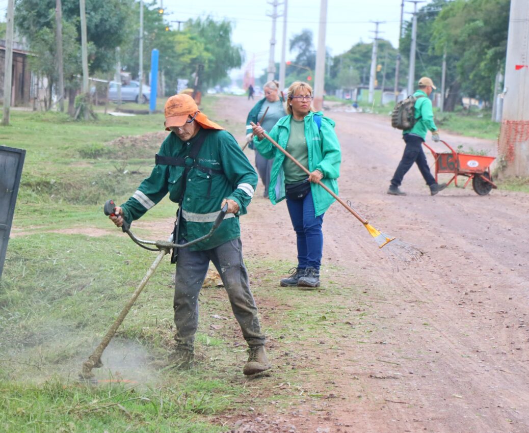 Los trabajos incluyen desmalezado, reducción de minibasurales, corte de pasto y recolección de residuos. El equipo está conformado por 16 trabajadores con motoguadañas, desmalezadoras, motosierras, en un operativo que demandará unos tres días.