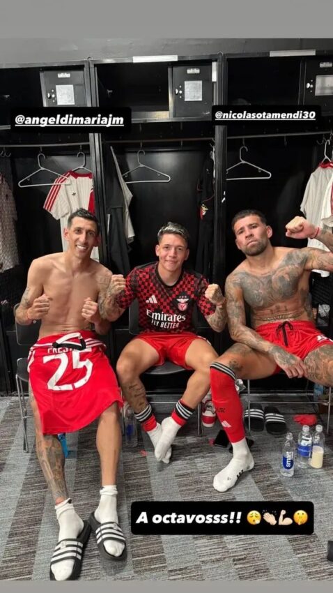 Tras el partido, los argentinos del conjunto portugués Nicolás Otamendi y Gianluca Prestianni se volcaron a las redes socialesno solo para celebrar el objetivo, sino para lanzar algún saludo aludiendo al fracaso xeneize.