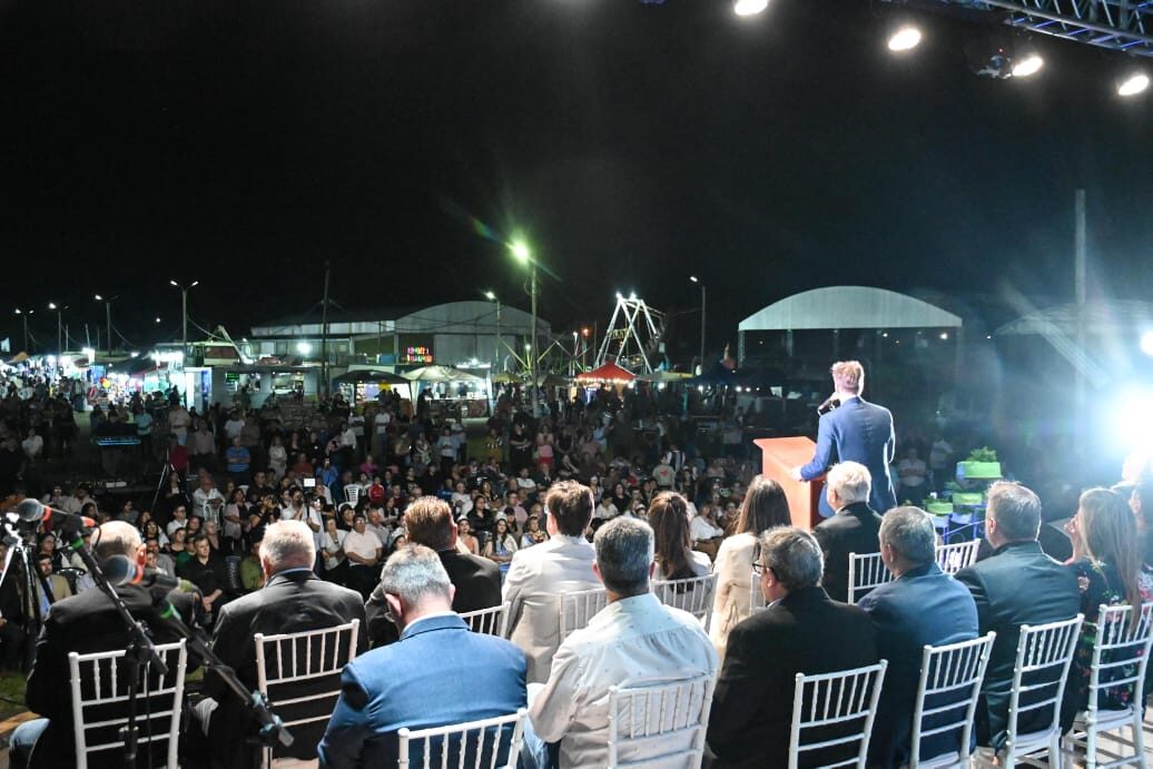 La presidente de la Cámara de Diputados, Carmen Delgado, junto al diputado Sebastián Lazzarini, participaron del acto institucional por el 85° aniversario de Hermoso Campo y la 32ª Fiesta Provincial del Sorgo y la Cosecha Gruesa, encabezado por el gobernador Leandro Zdero y el intendente Diógenes Aníbal Requena.
