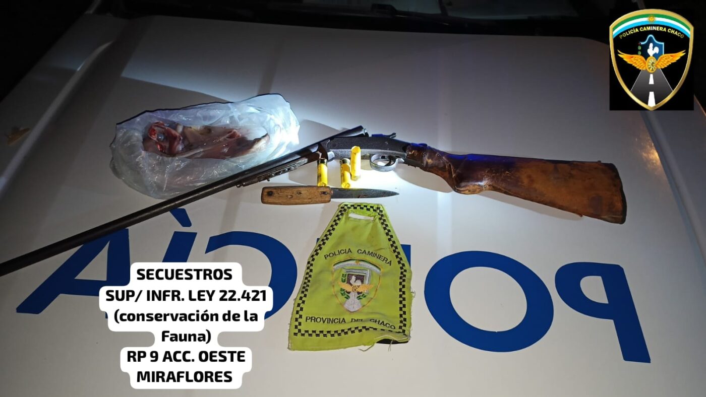 Se trató de una camioneta marca Chevrolet modelo S10, conducido por un joven de 27 años, el mismo transportaba un arma de fuego (escopeta), calibre 20 y (01) cuchillo de 20 cm largo.,