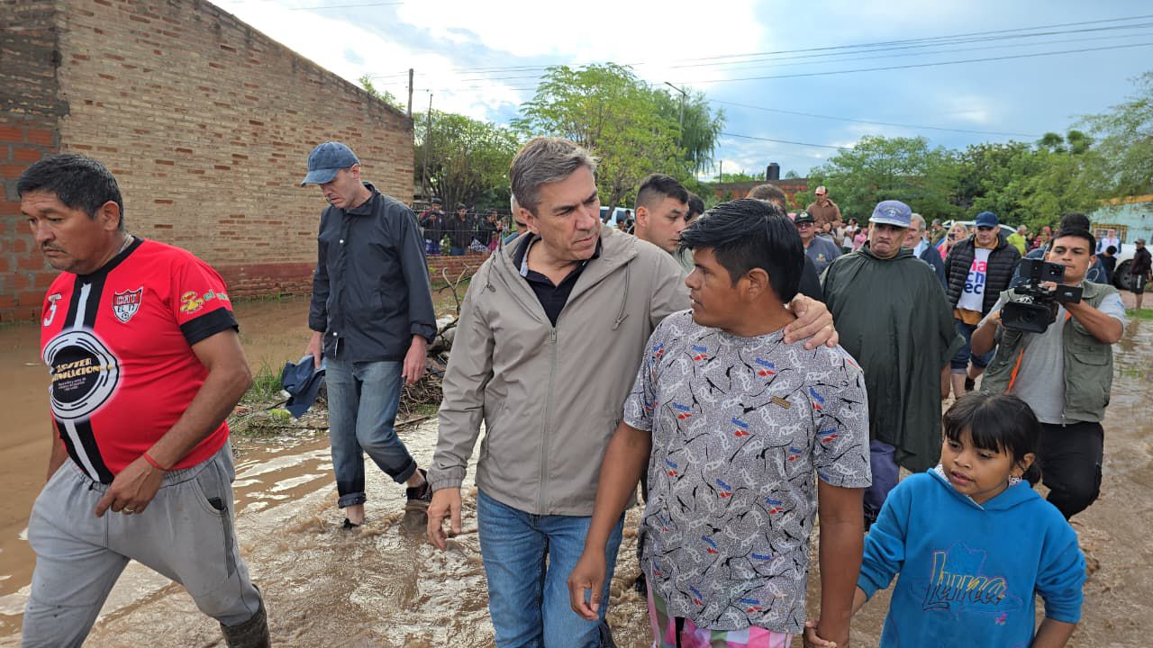 El mandatario provincial estuvo acompañado por ministros del gabinete y legisladores provinciales, en una recorrida por sectores anegados donde el agua mantiene aisladas a familias, complica la circulación y genera una situación crítica en distintos puntos de la localidad. “Estamos presentes en el lugar, acompañando a cada familia que hoy está atravesando un momento muy difícil. *La prioridad es asistir, contener y dar respuestas concretas, luego continuamos hacia otras localidades”, expresó el gobernador.*