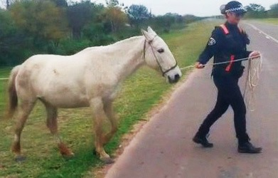 Operadores viales, quienes se encontraban realizando recorrida de prevención en ruta provincial N° 90 acc sur km 60, secuestraron un equino suelto.