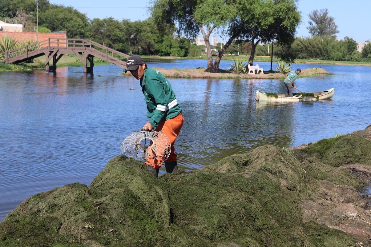 Un operativo integral con alrededor de 40 operarios y maquinaria específica tuvo lugar este sábado por la mañana en uno de los pulmones ecológicos con los que cuenta la ciudad. En la zona comprendida con frente en avenida Italia y calle González Montaner, hasta la calle French; con el importante espejo de agua incluido, se realizó la limpieza y corte de pasto; además del retiro de algas de la laguna propiamente dicha.