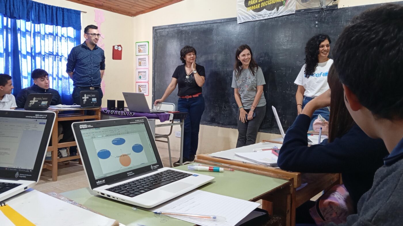 Estar en las escuelas posibilitó a funcionarios y referentes de UNICEF tomar contacto directo con docentes, estudiantes y coordinadores del programa para verificar el correcto avance del ciclo lectivo y constatar algunas de sus necesidades. La directora de la Regional 10 C, Mirian Gómez, agradeció el cálido recibimiento por parte de las escuelas visitadas y manifestó que en las zonas rurales del Chaco «se hace imprescindible contar con programas como este, que aproximen a los alumnos al nivel Secundario, a sus estudios, y garantizar así su escolarización, porque ellos tienen derecho a seguir estudiando y nosotros estamos para garantizar ese derecho». «Para mí es muy gratificante poder realizar este trabajo en territorio y poder supervisar cómo se viene dando cumplimiento al pedido de la ministra de Educación, que es garantizar que los chicos estén en el aula y que estén aprendiendo», expresó. Por su parte, la coordinadora de SRTIC en Chaco por UNICEF, Yanina Papparella, valoró «el compromiso del Gobierno del Chaco con la sostenibilidad de este modelo educativo que propone una alternativa para la modalidad rural, que reconoce el contexto de los estudiantes rurales y asegura el derecho a la educación secundaria, contribuyendo a la vez a la reducción de la brecha digital entre estudiantes urbanos y rurales». También integraron la comitiva las responsables pedagógicas de SRTIC por el Ministerio de Educación, Madia Burgos y Liliana López.