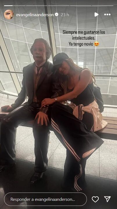“Siempre me gustaron los intelectuales», escribió la modelo junto a una imagen de ella sentada al lado de una estatua de Albert Einstein ubicada en el aeropuerto de Frankfurt.