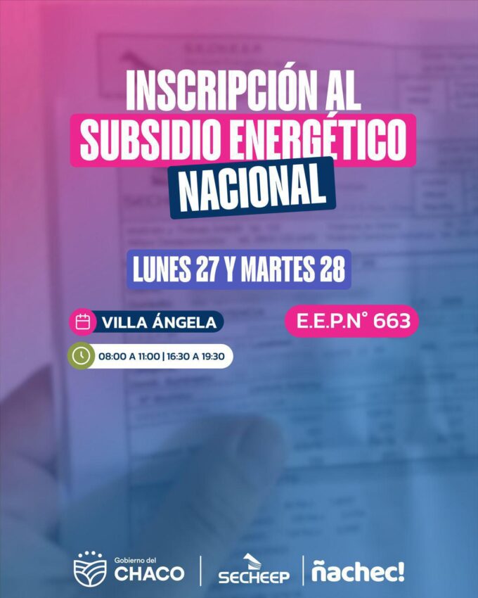 El Gobierno refuerza el trabajo en terreno para impulsar que más hogares chaqueños se adhieran al subsidio nacional a las facturas de luz. En ese marco, este lunes 27, en Villa Ángela, se pone en marcha un operativo conjunto entre Secheep y el equipo del Programa Ñachec, que recorrerá toda la provincia para asesorar a las familias sobre los pasos para adherirse al beneficio y abaratar el costo de sus boletas.