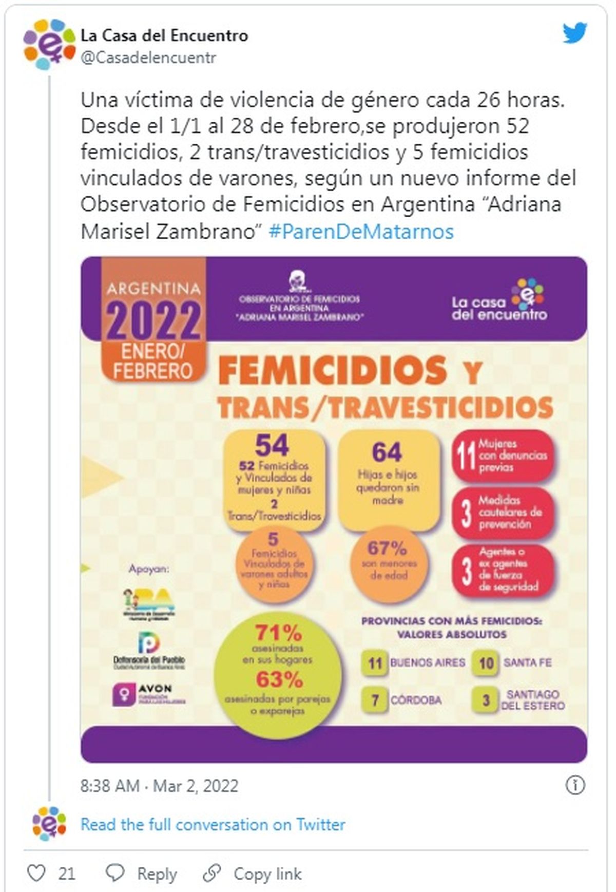 Hasta el momento se desconocen los motivos por los que el hombre decidió asesinar a su pareja, lo que podría conocerse en las próximas horas cuando el femicida sea llevado ante la fiscal para su indagatoria.