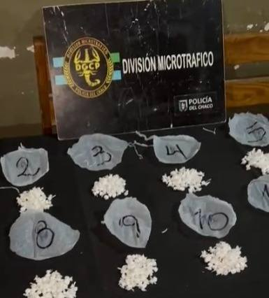 Al ingresar, identificaron a tres personas mayores de edad quienes fueron anoticiadas sobre el contenido de la orden, luego los agentes comenzaron con la busqueda. En una porción de la vivienda hallaron múltiples envoltorios con sustancia blanca, un envoltorio con sustancia vegetal, dinero en efectivo, un arma de fuego y 9 teléfonos celulares.