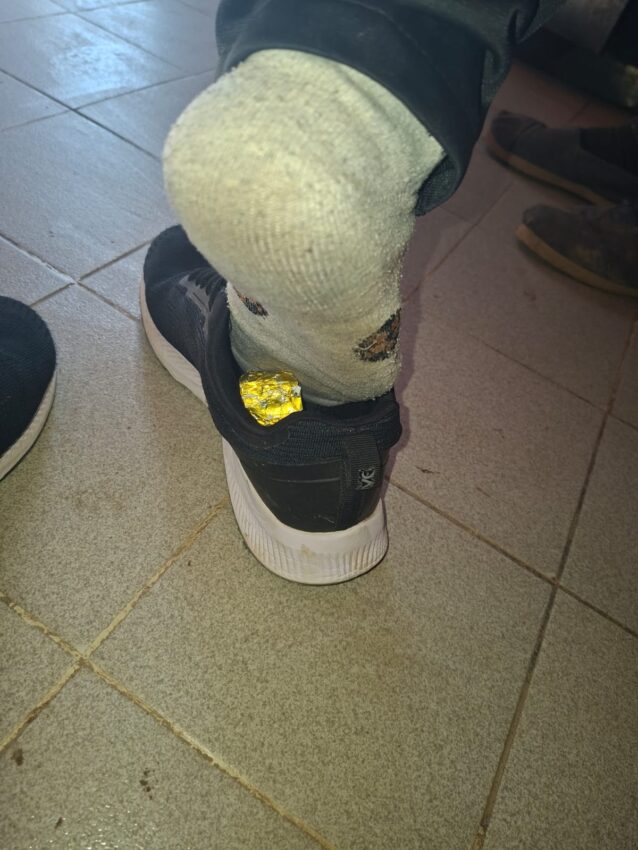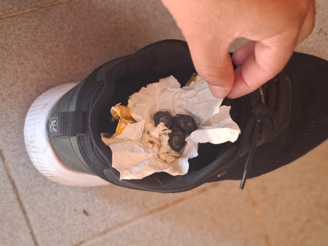 Hasta allí llegó el sujeto, quien despertó sospechas en un efectivo de la División Operaciones Drogas Interior al observar que caminaba con cierta dificultad. Ante la actitud del hombre, el agente decidió interceptarlo y, en presencia de testigos, le solicitó que se quitara las zapatillas.