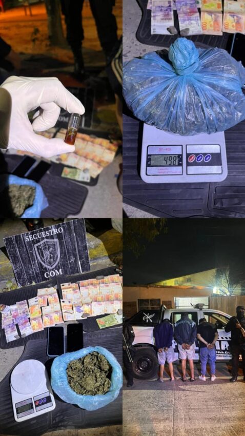 Se dio intervención a la Dirección General de Consumos Problemáticos, que tras realizar la prueba de campo, confirmó que se trataba de marihuana, con un peso total de 498 gramos. Asimismo, se secuestró la suma de $20.500 en efectivo y un teléfono celular iPhone.