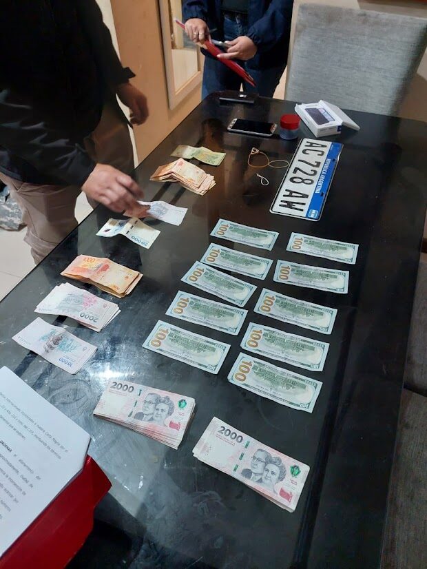 En los operativos también se incautaron US$ 1.000, $400.000 en efectivo, celulares, prendas de vestir, y un importante hallazgo: prendas de uso policial, un chaleco balístico y dos chapas patente, lo que abre nuevas líneas de investigación respecto a la posible vinculación de los implicados con hechos similares o suplantación de identidad.