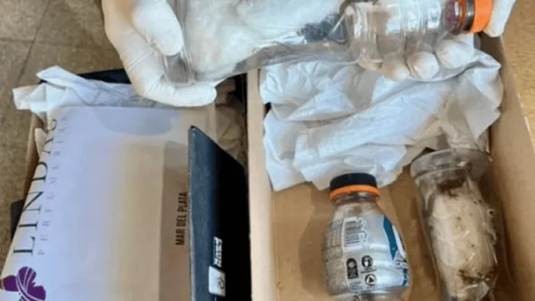 Se observó la imagen orgánica de botellas con reptiles pequeños. Los efectivos procedieron a abrirlas en presencia de testigos y hallaron tres lagartos Gecko Cacero Tropical. Serán entregados a Fauna Regional de San Antonio Oeste, provincia de Río Negro.