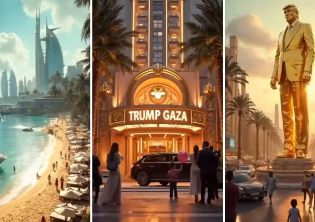 Trump compartió el martes un video generado con inteligencia artificial en el que se muestra Gaza como un lujoso centro turístico con una estatua dorada de él. El video incluye una canción en inglés cuya letra dice: «No más túneles, no más temor. La Gaza de Trump finalmente está aquí».
