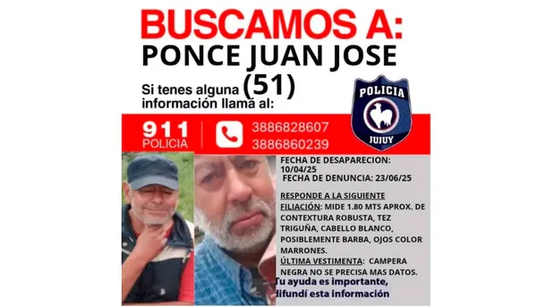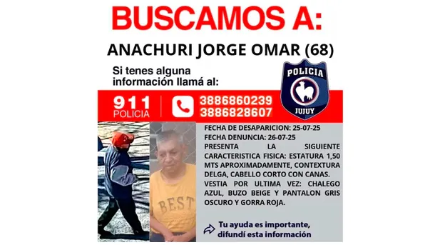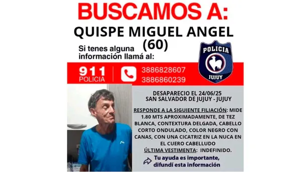 Fue visto por última vez en el Barrio Coronel Arias. Mide 1.55 m, delgado, tez blanca, cabello negro con canas, ojos negros, uno de ellos, desviado (esotropía). Se desconoce cómo vestía.