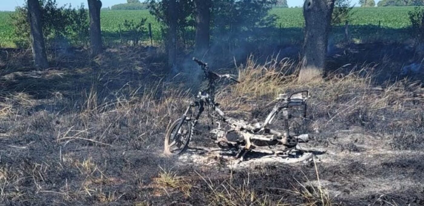 En el lugar hubo un operativo policial para detener al sospechoso, pero al descubrir que estaba muerto, los investigadores estimaron que el hombre decidió quitarse la vida. Su cuerpo estaba calcinado, al igual que la moto.