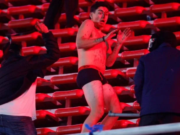 Muchos hinchas visitantes fueron alcanzados por los ataques, algunos quedaron ensangrentados, otros fueron despojados de su ropa y hasta se registró a un simpatizante arrojándose al vacío para escapar de los golpes.