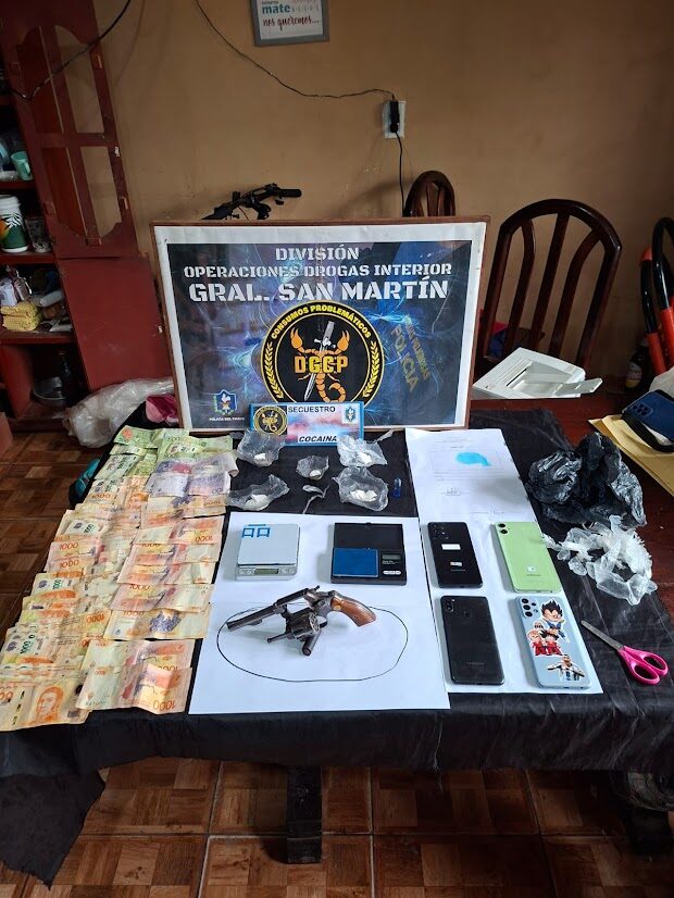 Las tareas fueron encabezadas por la División Operaciones Drogas Interior San Martín, bajo supervisión del comisario inspector Iván César Basiniani, jefe del Departamento Antinarcóticos Interior. Colaboraron también agentes de la División Infantería, Violencia Familiar y de Género, Investigaciones y Química Legal.