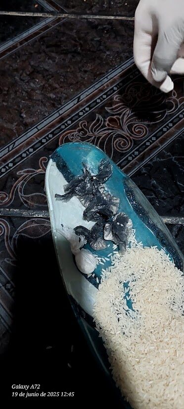 - Cinco envoltorios de polietileno tipo “bochones” con cocaína (peso total: 39,4 gramos)