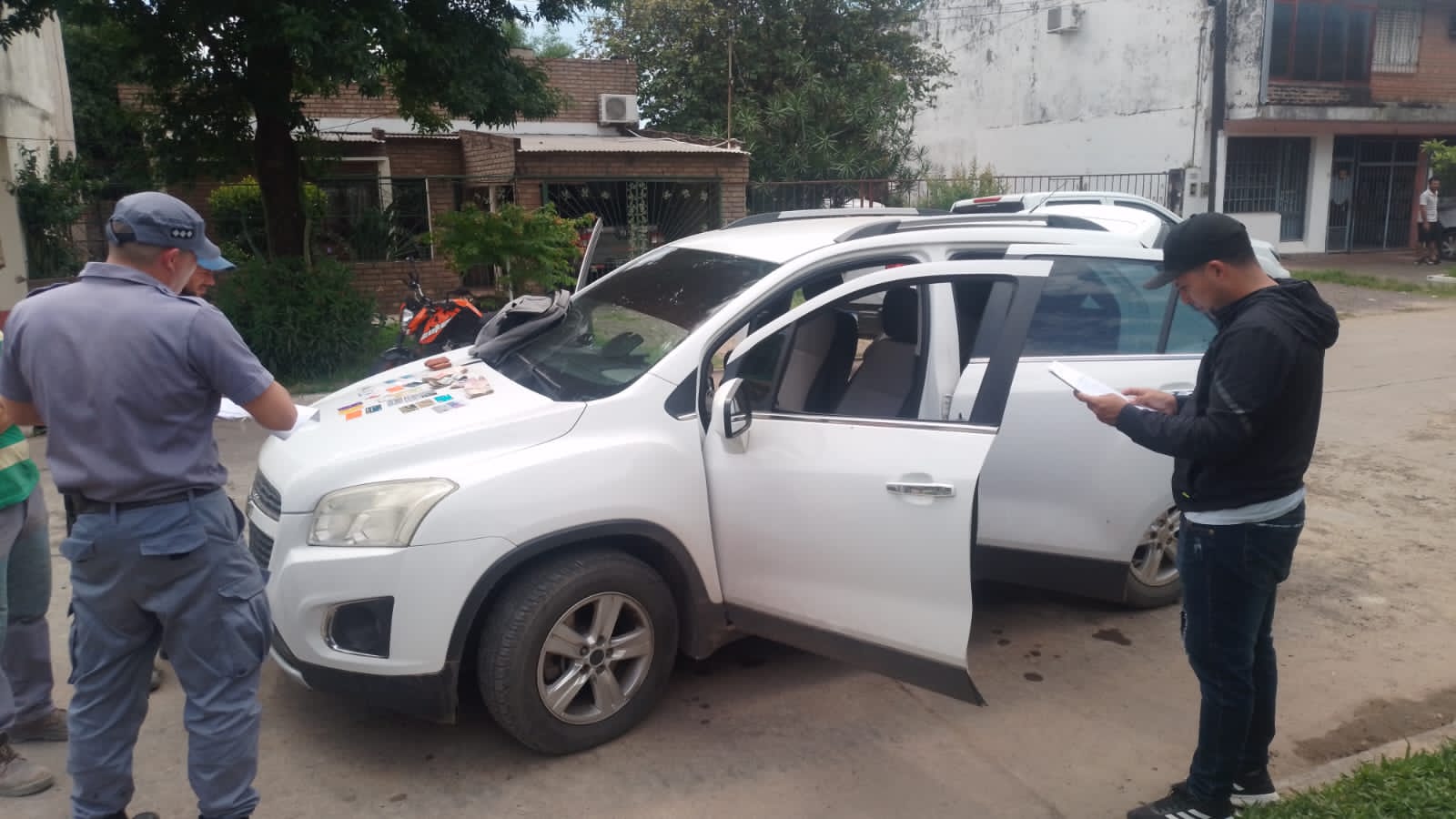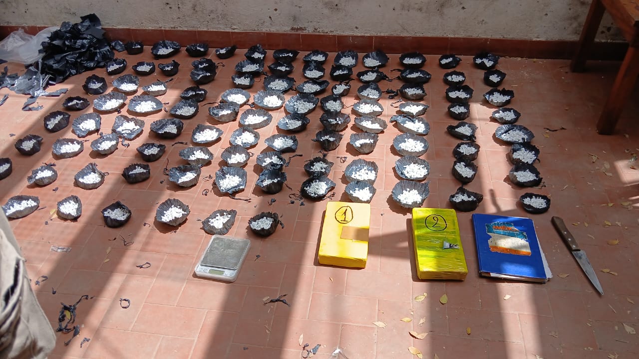 Al intentar identificarlos, uno de los sospechosos —que se encontraba a bordo de una camioneta Chevrolet Tracker blanca— se dio a la fuga, mientras que el otro ingresó al interior de una vivienda, oponiendo resistencia. Los agentes lograron reducirlo e ingresar al inmueble, donde encontraron una bolsa de polietileno con envoltorios de cocaína (“bochitas”), una balanza digital y un cuaderno con anotaciones.