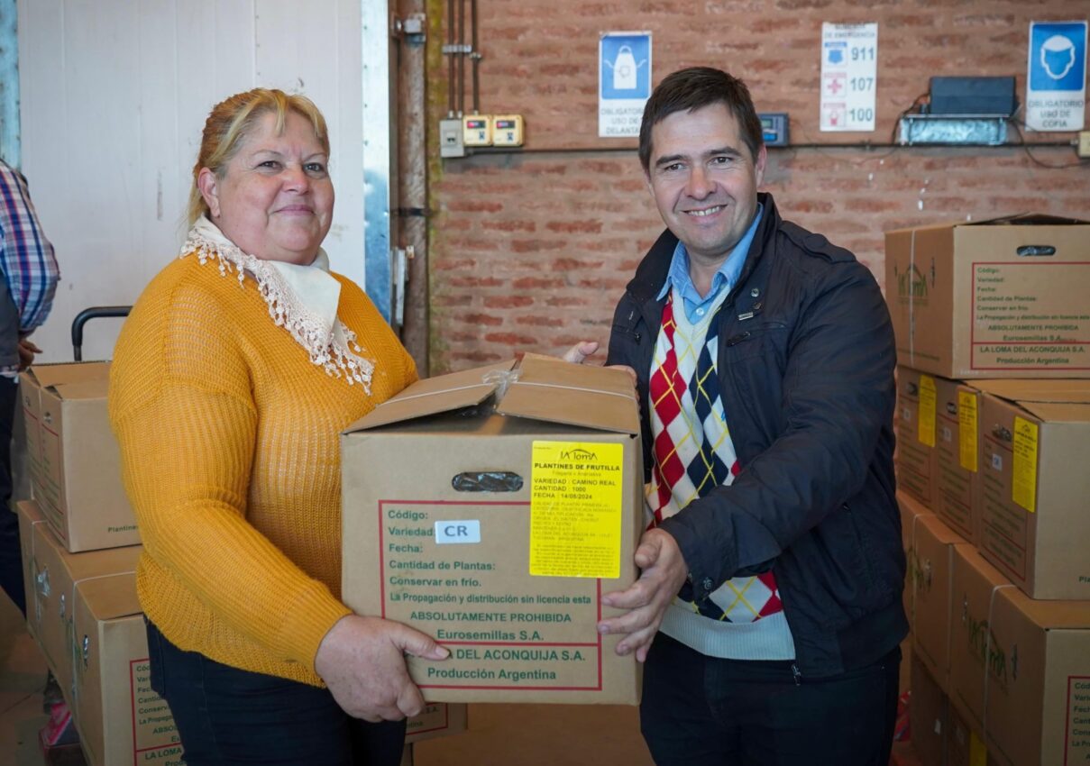 El ministro de la Producción y el Desarrollo Económico Sostenible, Hernán Halavacs, junto al secretario de Agricultura Oscar Pascual, entregaron este martes, en la Chacra 137 de Resistencia, más de 411.000 plantines de frutillas, destinados a 130 productores y siete escuelas, de un total de 30 localidades. “El objetivo es llegar a los 500.000 plantines entregados en toda la provincia”, afirmó el titular de la cartera productiva.