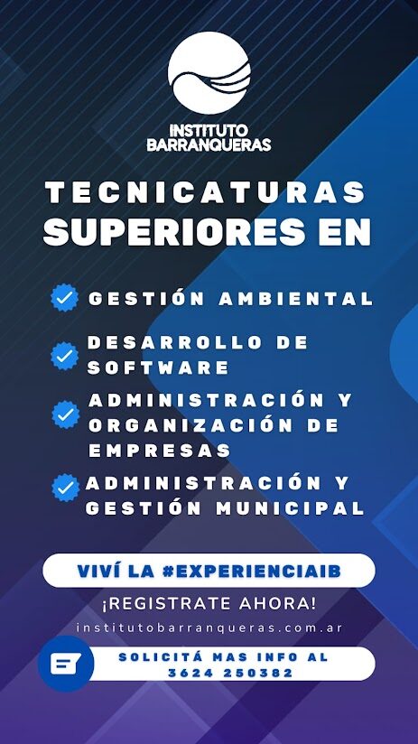 Las inscripciones se realizan completando el formulario disponible en www.institutobarranqueras.com.ar o comunicándose vía WhatsApp al 3624 250382.