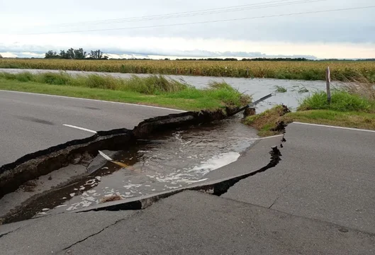 Según informaron medios locales, se registró un socavón del ancho del asfalto en el kilómetro 90, emplazado entre Matorrales y Villa del Rosario.