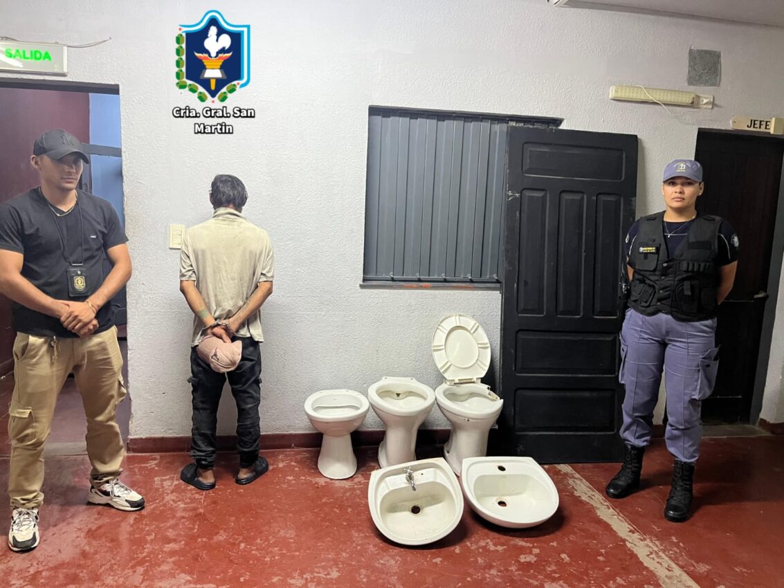Ante esta situación procedieron al secuestro de tres inodoros y dos lavatorios, el hombre de 31 años fue conducido a la dependencia policial.