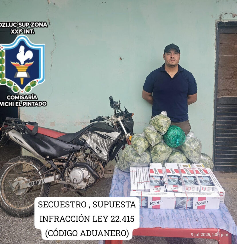 El procedimiento tuvo lugar alrededor de las 12:00 en inmediaciones del paraje El Sauzal, donde el personal policial interceptó el paso de una motocicleta Yamaha XTZ 125 cc, color negro, sin dominio visible, conducida por Ariel Rosendo Anríquez, de 42 años, domiciliado en El Sauzalito.
