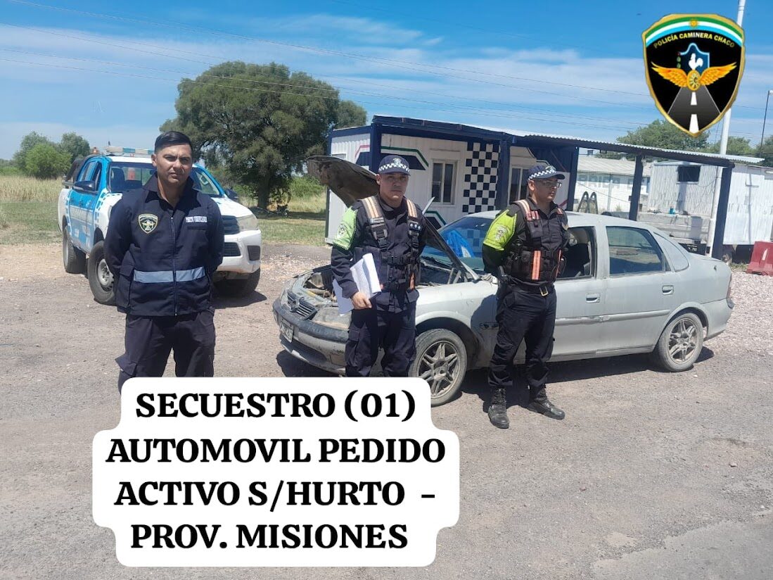 Se dio intervención al Personal División Verificaciones Vehícular S.Peña a/c del Of. Ppal Walter FLORES, con perito idóneo se determina es un automóvil marca Chevrolet motor N° Nn0069786, chasis N° 9BGJG19WVB527741 (Originales Fábrica). Consultado online DNRPA. coincidentes *PEDIDO SECUESTRO ACTIVO*. Seguidamente se procede incautar automóvil bajo acta de secuestro y remitido junto al conductor hasta la Comisaría 2da. S.Peña, para proseguir con las diligencias de rigor.