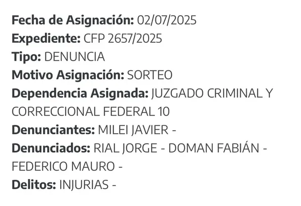 Este nuevo accionar se suma a una serie de demandas iniciadas por el mandatario que, hace apenas un mes, sufrió un revés judicial, cuando el juez Daniel Rafecas desestimó las denuncias contra los periodistas Ari Lijalad y Carlos Pagni, decisión que fue apelada por Milei.