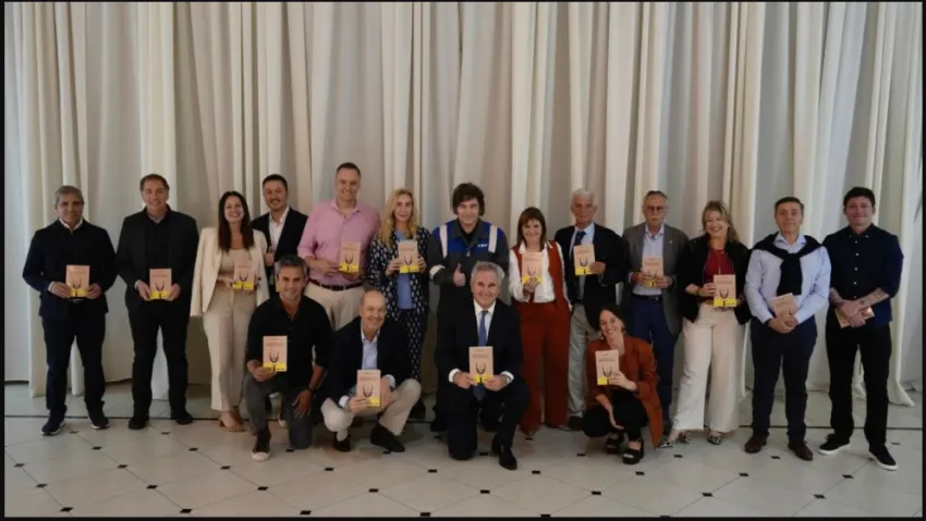 Antes de comenzar la reunión, el Presidente les regaló a todos los miembros de su Gabinete una copia del libro Defendiendo lo indefendible del economista Walter Block. Tras el obsequio, posaron juntos en una foto que compartió la Oficina del Presidente en X.