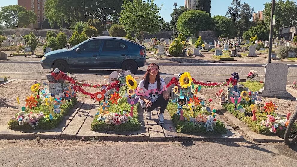 En el cementerio de Flores se encuentran enterrados sus hijos. A menudo les lleva juguetes, todo lo que sabe que ellos querrían. Les canta la canción que los acompañó desde que nacieron.