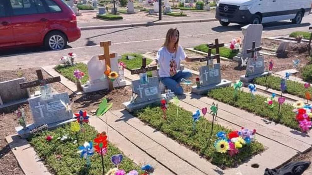 En el cementerio de Flores se encuentran enterrados sus hijos. A menudo les lleva juguetes, todo lo que sabe que ellos querrían. Les canta la canción que los acompañó desde que nacieron.