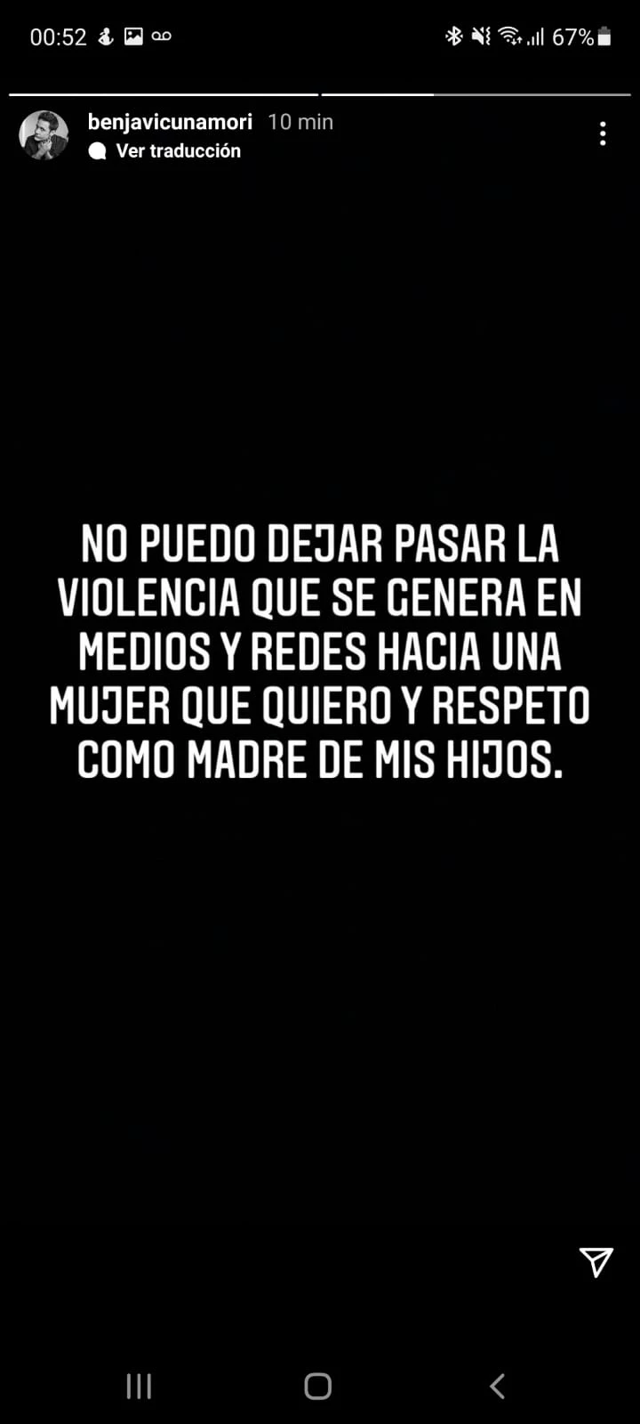 «No puedo dejar pasar la violencia que se genera en medios y redes hacia una mujer que quiero y respeto como madre de mis hijos», publicó Vicuña en su cuenta Instagram.