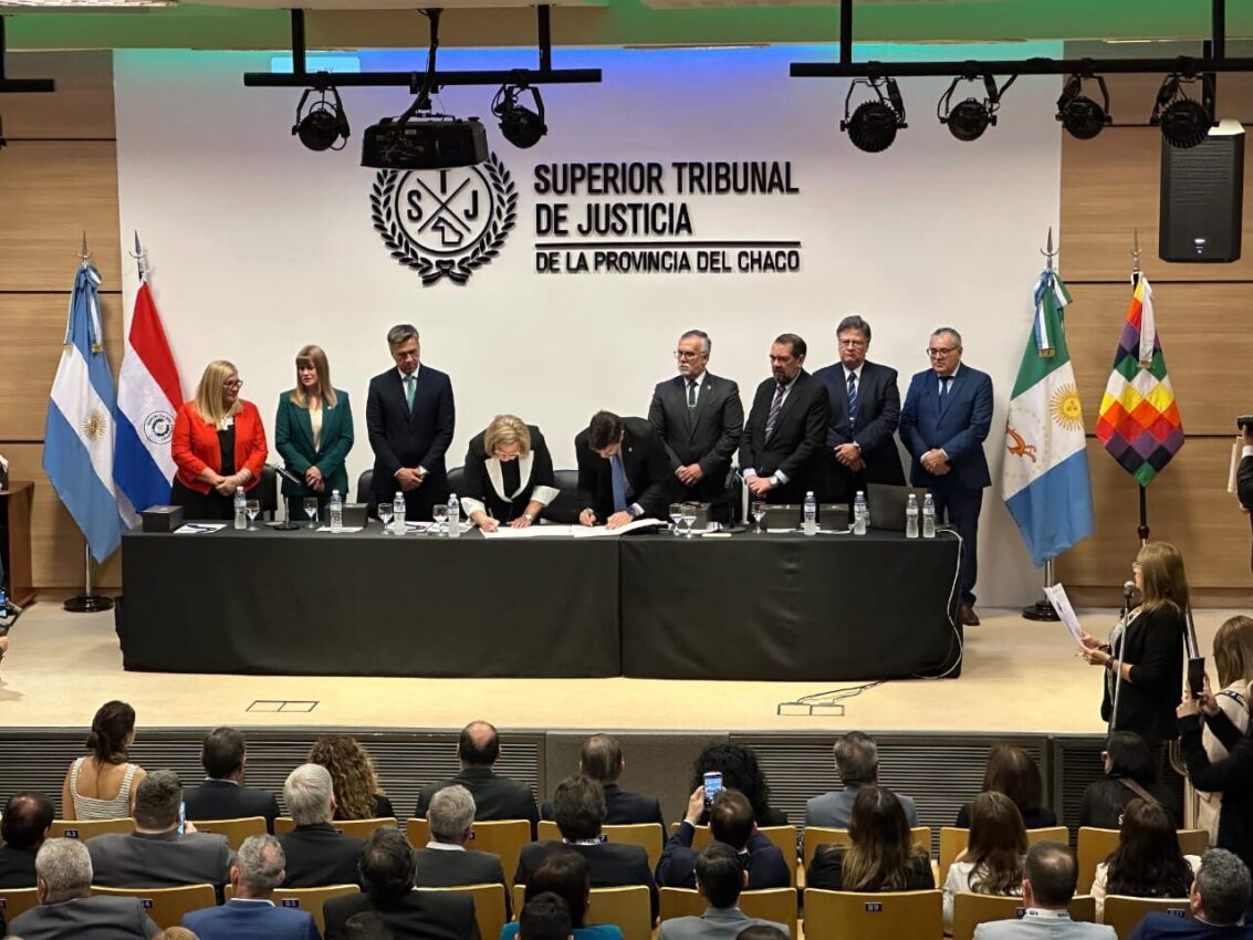 La misma estuvo presidida por la titular del FOFECMA, Edith Mirian Cristiano; junto al gobernador de Chaco, Leandro Zdero; Emilia María Valle, por el Superior Tribunal de Justicia y JUFEJUS; Víctor Del Río a cargo del Consejo de la Magistratura y Juzgado de Enjuiciamiento del Chaco; Luis Eduardo Rey Vázquez, al frente del STJ y del Consejo de la Magistratura de Corrientes; y Alejandro Alberto Chaín, miembros del STJ y presidente del Jurado de Enjuiciamiento de Corrientes.
