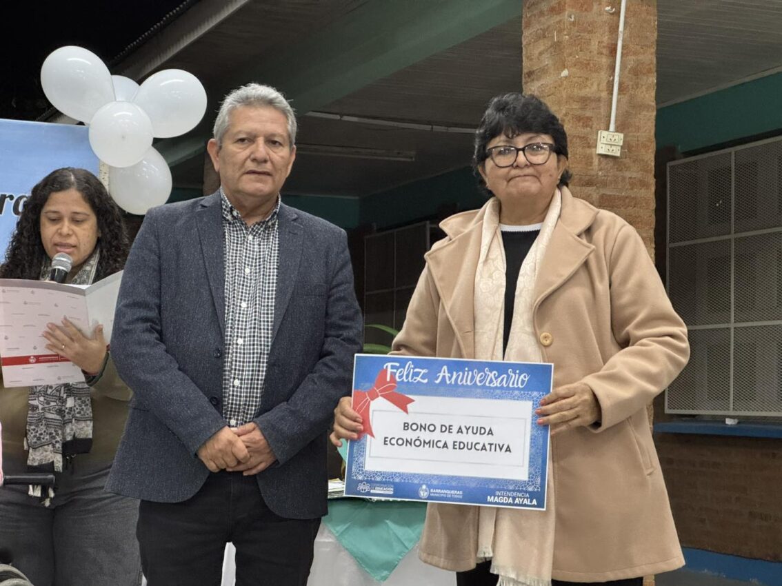 Durante la ceremonia, la Municipalidad de Barranqueras, a través del secretario de Hacienda, hizo entrega de una resolución que declara de interés municipal la fecha aniversario de la institución, además de un bono de ayuda económica destinado a fortalecer las actividades de la comunidad educativa.