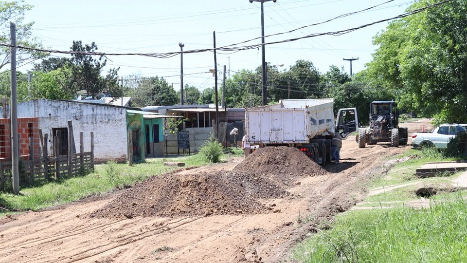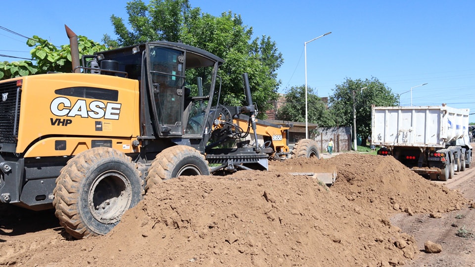 En el Barrio Malvinas, específicamente en el cuadrante de 9 de Julio, Nicolás R. Acosta, Rodríguez Peña y Tatane, llevamos a cabo trabajos de relleno, enripiado, perfilado y riego de calles.
