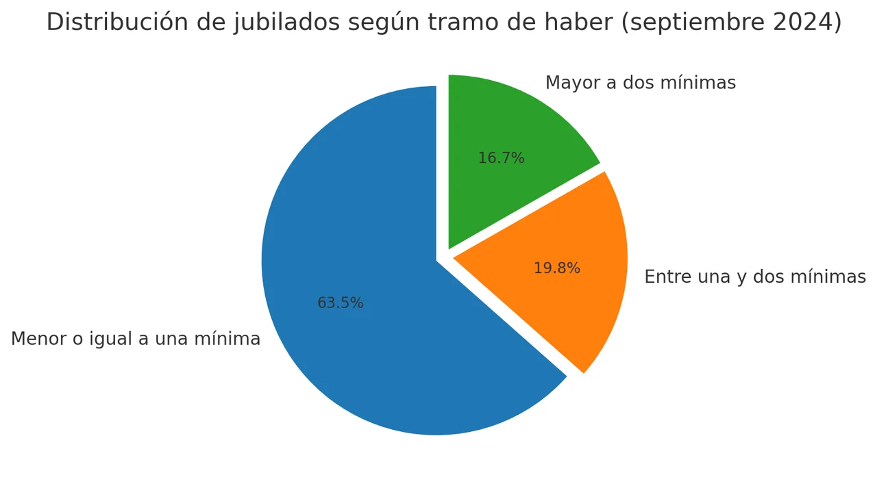 Apenas 1.235.318 jubilados perciben más de dos jubilaciones mínimas en la Argentina, según datos oficiales del SIPA de septiembre de 2024. Esa cifra representa alrededor del 17% del total de beneficiarios previsionales, que suman 7.379.478.