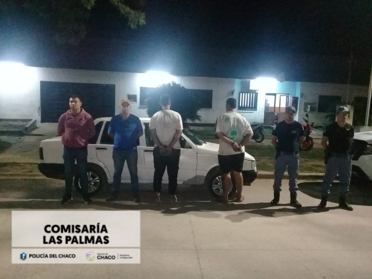 En la madrugada del domingo, la Comisaría Las Palmas fue informada sobre personas realizando disparos con armas de fuego desde el interior de un vehículo en la localidad. La denuncia llevó a un operativo de control en el Barrio Tupak, donde se localizó un Fiat Duna. Al acercarse la policía, los ocupantes del automóvil intentaron escapar a pie, pero fueron detenidos a pocos metros.