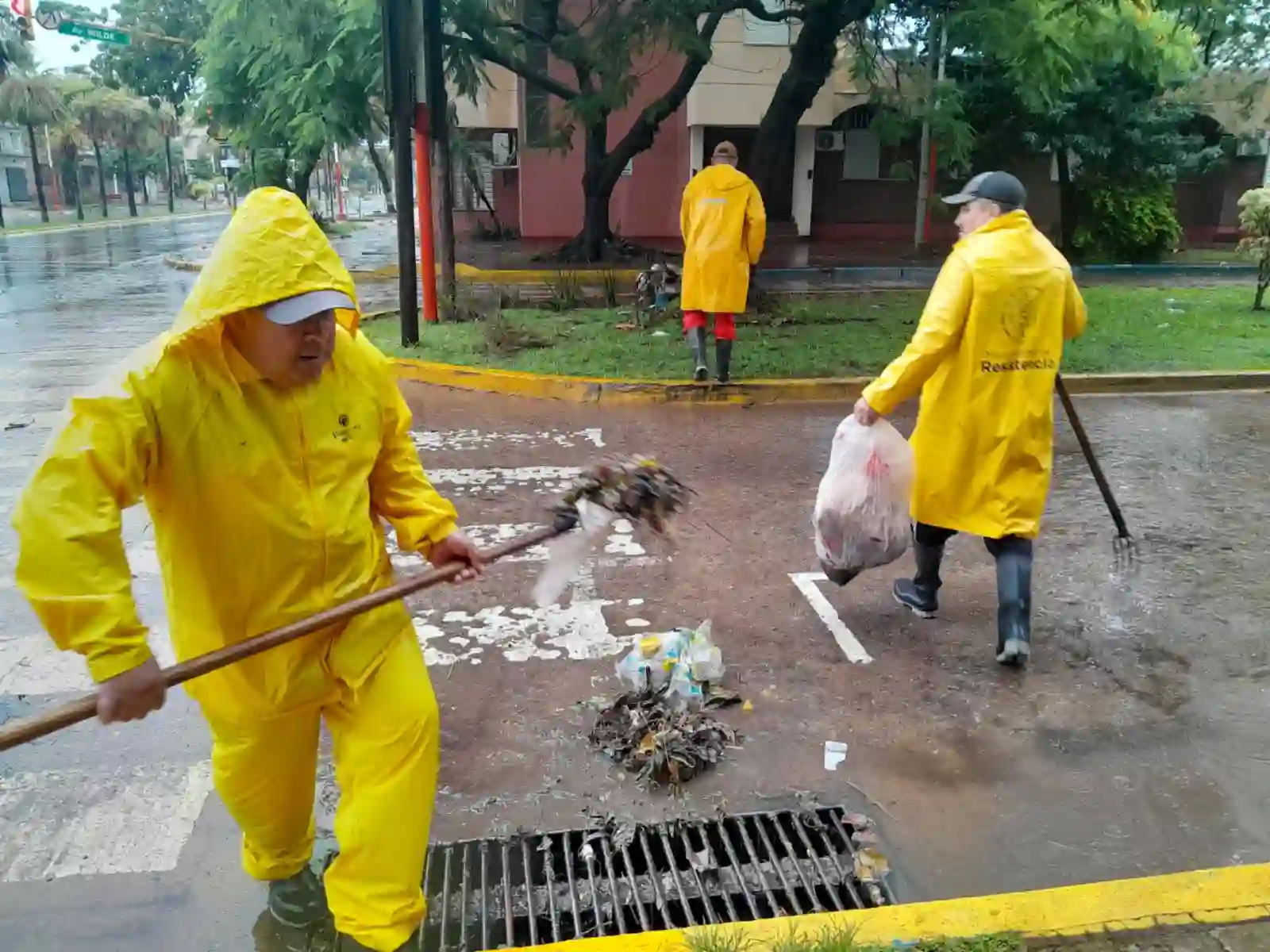Cuadrillas municipales de Resistencia continúan trabajando durante la jornada de este miércoles 25 de diciembre, tras registrarse precipitaciones dispares en distintos sectores de la ciudad.