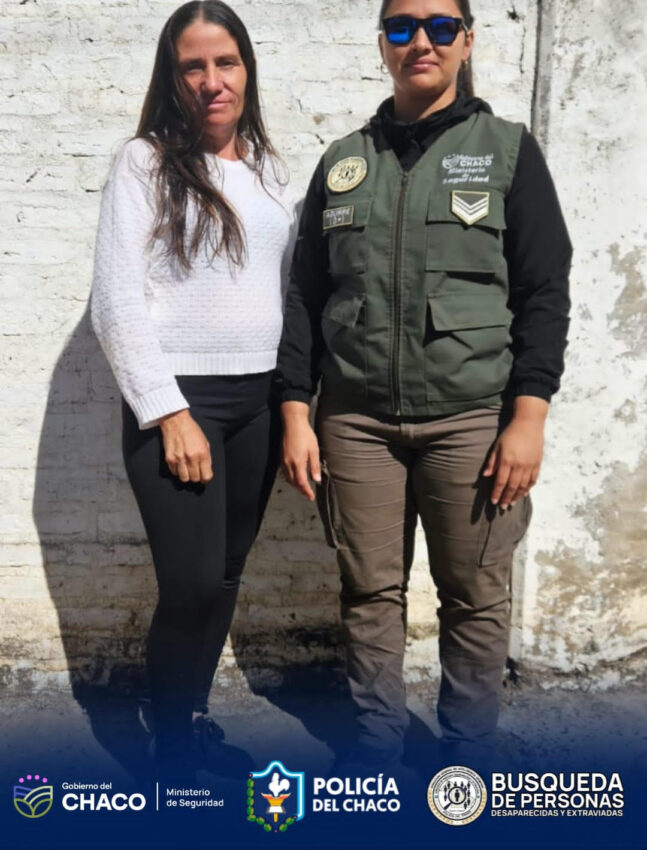 En el marco de la activación del protocolo para la Búsqueda de Personas Desaparecidas, se logró dar con el paradero de Graciela G., oriunda de la ciudad de Charata, quien había sido vista por última vez el pasado 26 de abril en cercanías del Hospital Julio C. Perrando, en Resistencia.